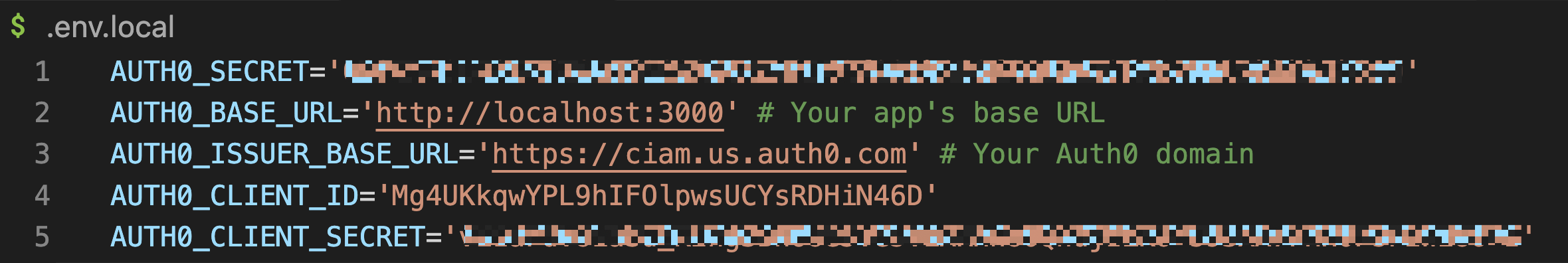 AUTH0_CLIENT_SECRET='' # Auth0 Client Secret from the app configurationAUTH0_SECRET